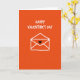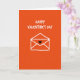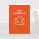 This greeting card features a bright orange background with a simple white outline of an envelope centered on the front, sealed with a small black heart ❤️. Above the envelope, the words “HAPPY VALENTINE’S DAY” sit near the top in uneven, chalk-like white lettering that feels friendly and casual. The envelope lines are slightly wavy and imperfect, like a quick drawing made with care, which gives the scene a sweet, close-to-the-heart look 🥰. The strong orange field surrounds everything with warmth, while the white lines keep the design airy and uncluttered. That single black heart stands out as the main focal point, suggesting a private note waiting inside for someone special. The layout is straightforward: message at the top, envelope in the middle, and plenty of open orange space around them. The white outlines have soft, uneven edges that look like they were drawn in one continuous stroke against the flat orange background.