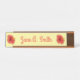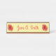 I was very pleased when I received my name plate. The brightness of the yellow caught my eye immediately because it was so true to color of the picture. The sturdiness of the material lets me know it won’t get bent or broken easily. The sturdiness of the card stock is a plus as well. The colors even on the chalkboard and apple are true to life colors. The apple looks like you can take a bite out of it.