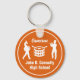 This cool customised orange high school marching band keychain features white typography of your player name under the drums. A great student musician keychain for parents.