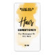 Shampoo and conditioner bottle product labels with an orange ink stain.