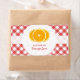 Customisable retro jar labels for homemade orange jam, mandarin jelly or preserves with fresh orange slices on red and white gingham tablecloth pattern. Other fruits jam stickers also available.