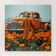The colour orange is the primary colour, with an orange truck, orange flowers and orange clothes.