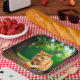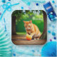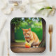These party paper plates feature a cute orange tabby cat playing with a ball of string.