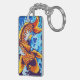 Tattoo style orange koi fish in a backdrop of blue water all around the koi fish