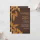 This beautiful wedding invitation features an old vintage paper texture look with images of orange coloured Fall leaves on a dark chocolate brown background. Great for any bride looking for a classic vintage look for their Fall wedding