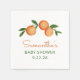 Three watercolor oranges on a leafy branch appear above the name of the mum-to-be in modern orange handwriting script on these citrus-themed baby shower napkins. Add the words "baby shower" and the date below in green sans serif font.
