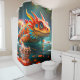 This shower curtain has an orange lizard on it.