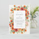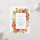 This design features a vibrant arrangement of watercolor poppies and ranunculus in shades of fiery orange and deep red. Lush sage green foliage intertwines with the blossoms to create a warm and inviting seasonal atmosphere. The artistic style brings a soft yet striking touch to the composition.