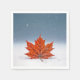 An orange maple leaf gracefully rests on a pristine blanket of snow, as delicate snowflakes drift down gently from the winter sky, creating a stunning scene that captures the beauty of the season.
