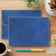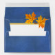 Orange maple leaves on blue stained grunge paper rustic wedding envelope featuring a gold stripe on blue and white background and orange maple leaves on the inside. This lovely fall wedding design with a vintage flair is part of a wedding set or collection and is a totally customisable template perfect for an autumn wedding.