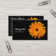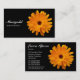 A business card with an orange marigold photo motif. Business name etc on the front with other details on the reverse with the same motif and style.