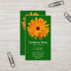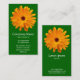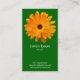 A clear stylish and attractive business card template with an attractive orange marigold motif. Main company details on the front, with name and personal contact on the back, with the same motif and style.