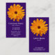 A clear stylish and attractive business card template with an attractive orange marigold motif. Main company details on the front, with name and personal contact on the back, with the same motif and style.
