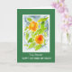 A pretty October Birthday Card for a Stepmother, with the October birth-month flowers, bright orange Pot Marigolds, surrounds by a deep green border with white lettering. The design is from a watercolour painting by Judy Adamson. Please feel free to personalise the inside message.