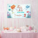 Dive into the magical world of undersea wonders with our 'Two the Sea' party banner! This enchanting mermaid-themed design features a delightful illustration of a cute orange mermaid surrounded by a vibrant and colourful underwater world. The customisable name allows you to add a personal touch, making it the perfect backdrop for your little mermaid's second birthday celebration. Bring the oceanic charm to your party with this visually stunning banner