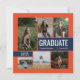 Stylish graduation announcement card and party invitation features six senior photos with "graduate" as a large focal point. Personalise the modern custom text with your grad's name, school, and class year. This two-sided card design includes graduation party invitation wording on the back. Customise the colours of the picture frame and boxes on the front and the boxes on the back to match your school colours or coordinate with the photography. Matching products and other colours available.