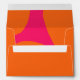 A bold bright orange envelope with simple modern styling, this design has a matching hot pink and orange abstract pattern lining the inside of the envelope. The back flap has a text template for including your return address.