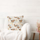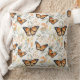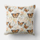 There's a flock of orange Monarch butterflies flying around on both sides of this pretty throw pillow. Along with the butterfly images are grey and orange floral and leaf designs.