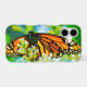 A close-up photo of a delicate, orange monarch butterfly on a white blossom. Feel the sunshine of a warm, sunny day whenever you use this stunning, colourful photography cell phone case. Makes a great gift for someone special!