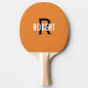 Modern ping pong paddle with an orange background, a black monogram and a white typography name. Personalise with your name and monogram.