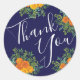 Orange & Navy Blue Peony & Rose Floral Wedding Classic Round Sticker