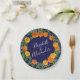 Orange Navy Blue Peony & Rose Floral Wedding Paper Plate