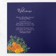 Orange & Navy Blue Peony Rose Wedding Programs Tri-Fold Programme