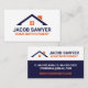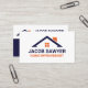 These business cards feature a simple roof graphic in orange and navy. Fully customisable, these are perfect if you work in construction, as a contractor, or do home repair on the side.
