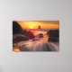 Featuring a breath taking view of a Orange sunset over top of the ocean and the waves hitting the shore of the Ocean.This is a beautiful oil painting print on this Wrapped Canvas .