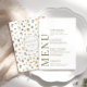 Enhance your timeless wedding celebration with an elegant menu card. Showcasing a delicate pattern of orange flowers and greenery leaves, this refined design is complemented by a personalised touch—the bride and groom monogram on the back, creating a memorable and distinctive element for your special day.
