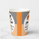 Orange One Spooky Dude Personalised Halloween 1st Birthday Party Paper Cups - Keep everyone hydrated and on theme with these rad paper cups. Celebrate your little dude's big one in a spooky and fun way this Halloween season with this cute orange and black chequerboard retro smiley face pumpkin 1st Boo-Day Party theme for boys. Featuring black and white chequerboard and orange and white chequerboard, classic Halloween colours. A smiley face pumpkin with lightning eyes adds to the fun, retro spooky season aesthetic.