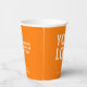 Easily personalize our 8 ounce paper cups with your business logo and custom text. These FDA approved paper cups are for cold and hot drinks. The dimensions for the 8 oz cups are 3.75 inch x 3 inch. Available with or without lids. Also available in 12 oz size. Designed in orange and other colors (all colors are customizable). Sold in sets of 8. Low minimum order quantity and no setup fee. Printed in the U.S.A.