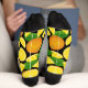 Orange and leaves. Seamless pattern. Custom background colour. Custom top stripe colour. Custom text on each sock.