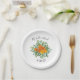 Orange Peony & Rose Floral Wedding Paper Plate