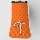 Super fun, colourful, polka-dotted golf accessory personalised with your initial or as a gift for your favourite golf buddy. Orange on orange, shades of orange polka dots for the orange colour lover who loves to golf.