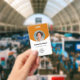 Personalise these vertical orange employee badges with an employee photo, company logo, bar code, employee id and name.