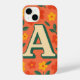 "Orange Phone Case with Bold ‘A’ & Floral Design