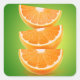 Orange pieces on green square sticker