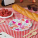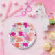 Orange Pink Blue Abstract Modern Paint Splashes Paper Plate