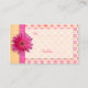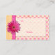 This text on this fun pink and orange gerbera daisy place card is fully customisable. To change the text use the customise option. The size of the card is 3.5"x2". This place card is bright, cheerful, and fun and would be great for a spring or summer pink and orange themed wedding. In addition to a wedding, this card would also work well for a bridal shower, birthday, or valentine's day party invitation.