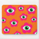 A colourful mouse pad with a retro evil eye design. Pink flowers with evil eyes on their centre, this mouse pad is great for anyone who is into retro vibes!
