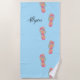 Orange & Pink Flip Flops Blk Script Name Pale Blue Beach Towel