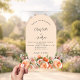 For an elegant and romantic wedding. A clear, transparent background decorated with orange, peach and pink florals. Arch shaped frame. Personalise and add your names and details.
