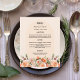 Orange pink peach florals arch wedding menu card