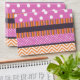 Unique and stylish design made of many different patterns like polka dots, chevron and stripes. In this design you can see colours like magenta pink, purple, white and orange.