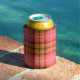 Orange and coral pink tartan. Colours found within this tartan like pattern : orange, shades of pink, olive green, yellow, and deep burgundy.