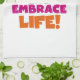 Run and Embrace Life text T-shirts, hoodies, magnets, mousepads, cards, stickers, key chains, buttons, magnets, paper plates and napkins, gift bags, candy tins, watches, and many other items with a bright pink and orange design. These running theme products make great gifts for anyone who runs for fun, runs track, marathons, half marathons, 10Ks, or 5Ks!