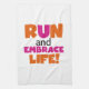 Orange Pink Text Fitness Running Runner Marathon Tea Towel