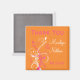 This bright orange, hot pink, and white floral wedding favour fridge magnet matches the wedding invitation shown below. All the text is customisable so you can change it to say whatever you like. Change it to say "Save the Date" or whatever you want. If you require any other matching items in this design, please email your request to niteowlstudio@gmail.com.