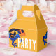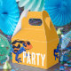 This tropical party giftbox features the spots and stripes pattern of an orange poison dart frog